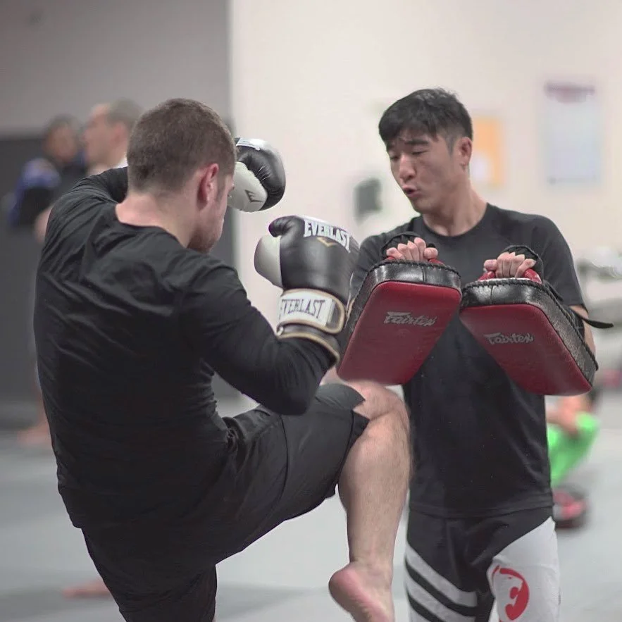 Once control is established, offense becomes much more efficient. Knees are the primary weapon in the clinch, especially to the body. Our coaches emphasize body knees because they slow breathing, sap energy, and add up quickly over the course of a round.